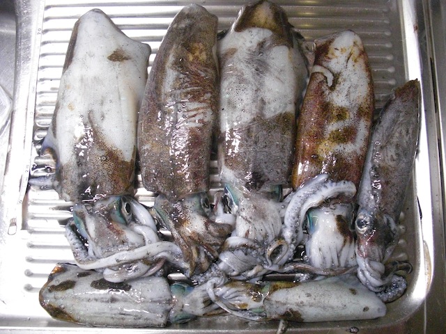 この時期になると、タルイカは漁港などでよくとれる。波の状況と風向きによっては、一度に何杯もあがるらしい。