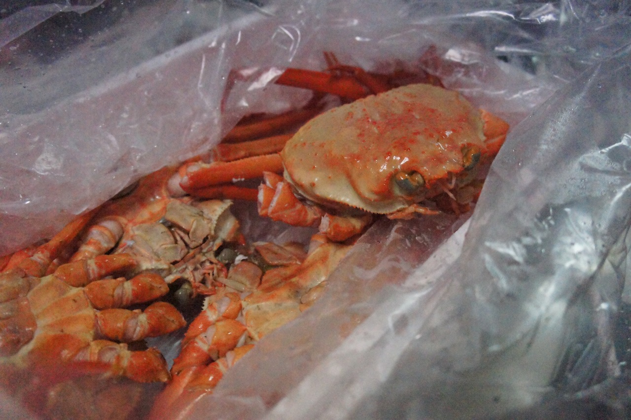 でも、お客は少なく、売り切れた店も多くあったのだが、目的の紅ズワイガニは無事購入する事が出来た。